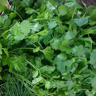 Cilantro en atado, cultivado por manos campesinas de Frutillar.